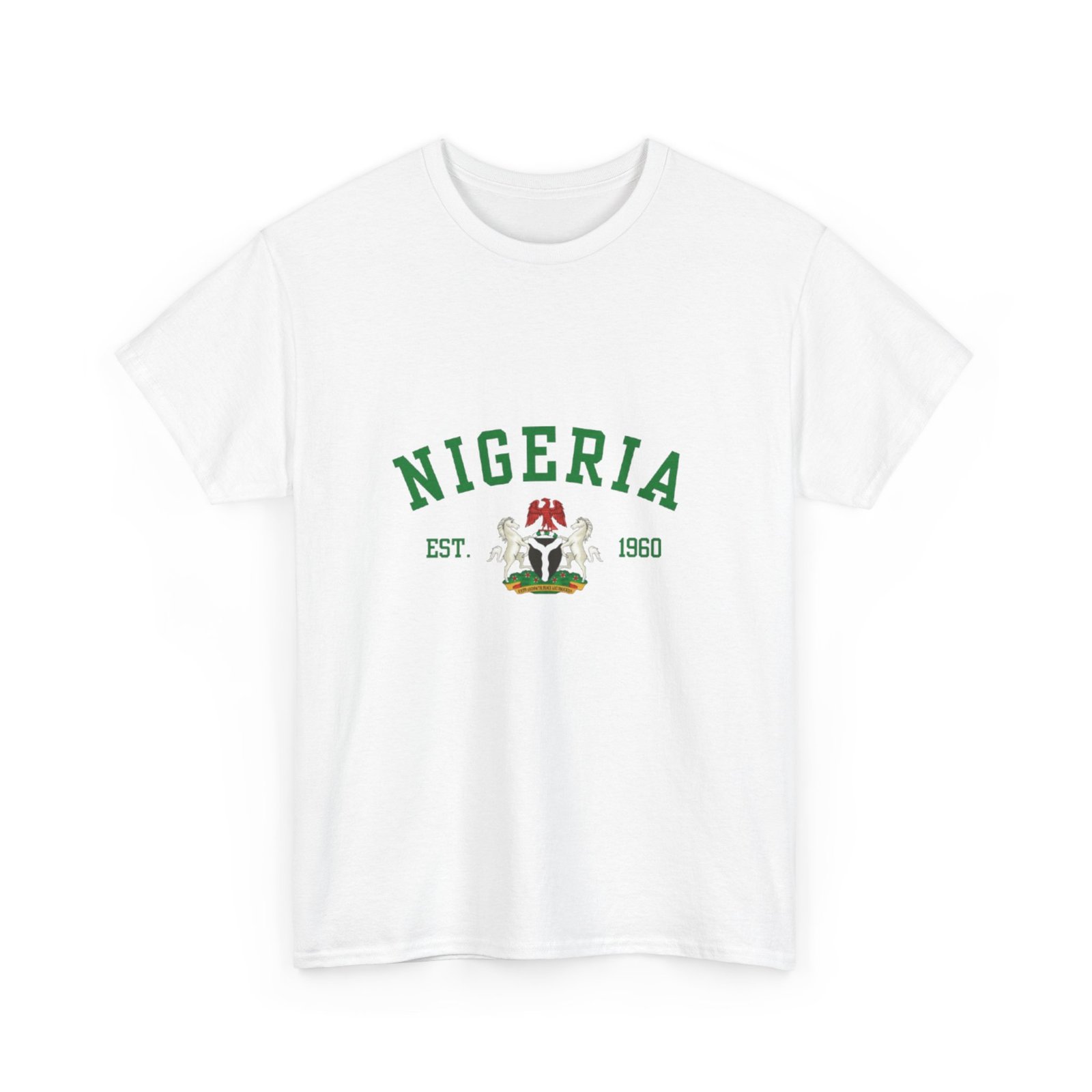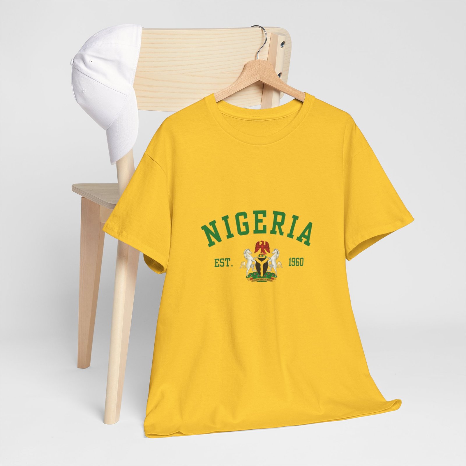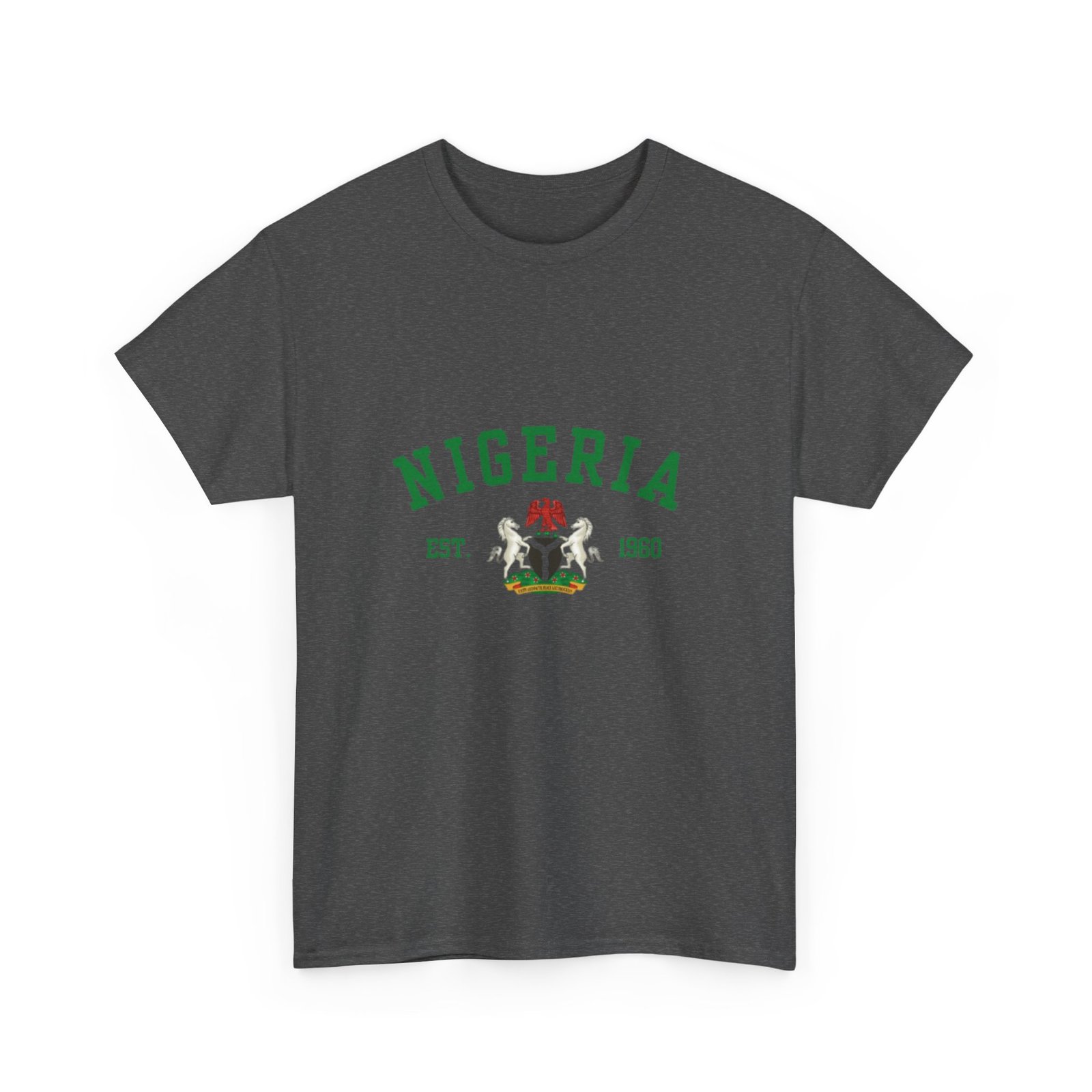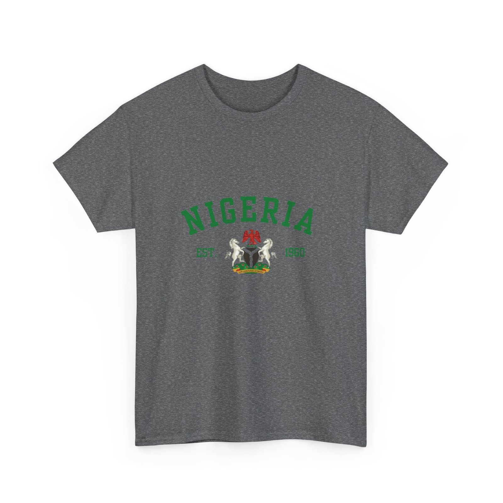 Nigeria Unisex Heavy Cotton Tee – Nostalgic Heritage Shirt, Great Gift for Independence Day, Casual Wear, Travel, Memory Tee | Orders in USD
