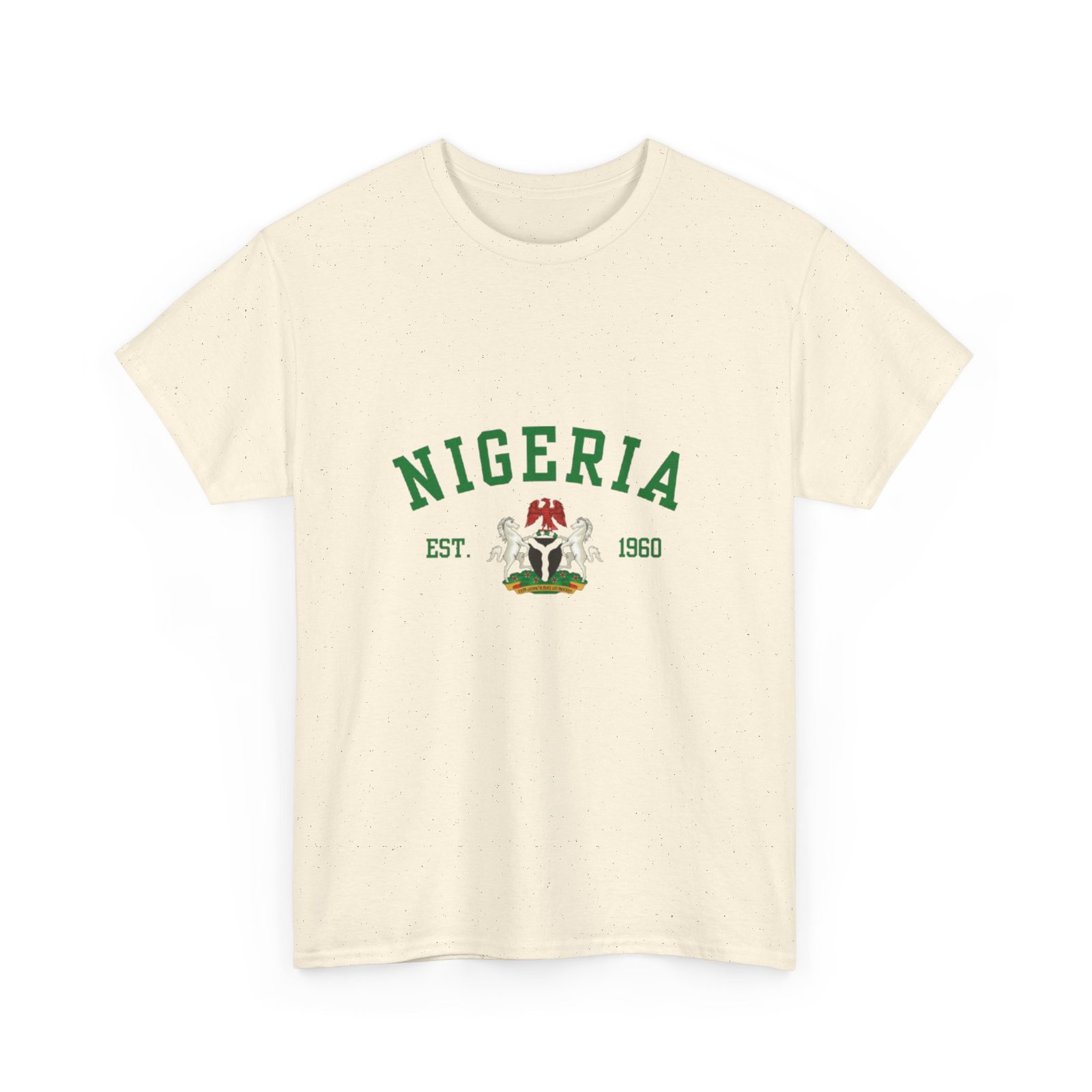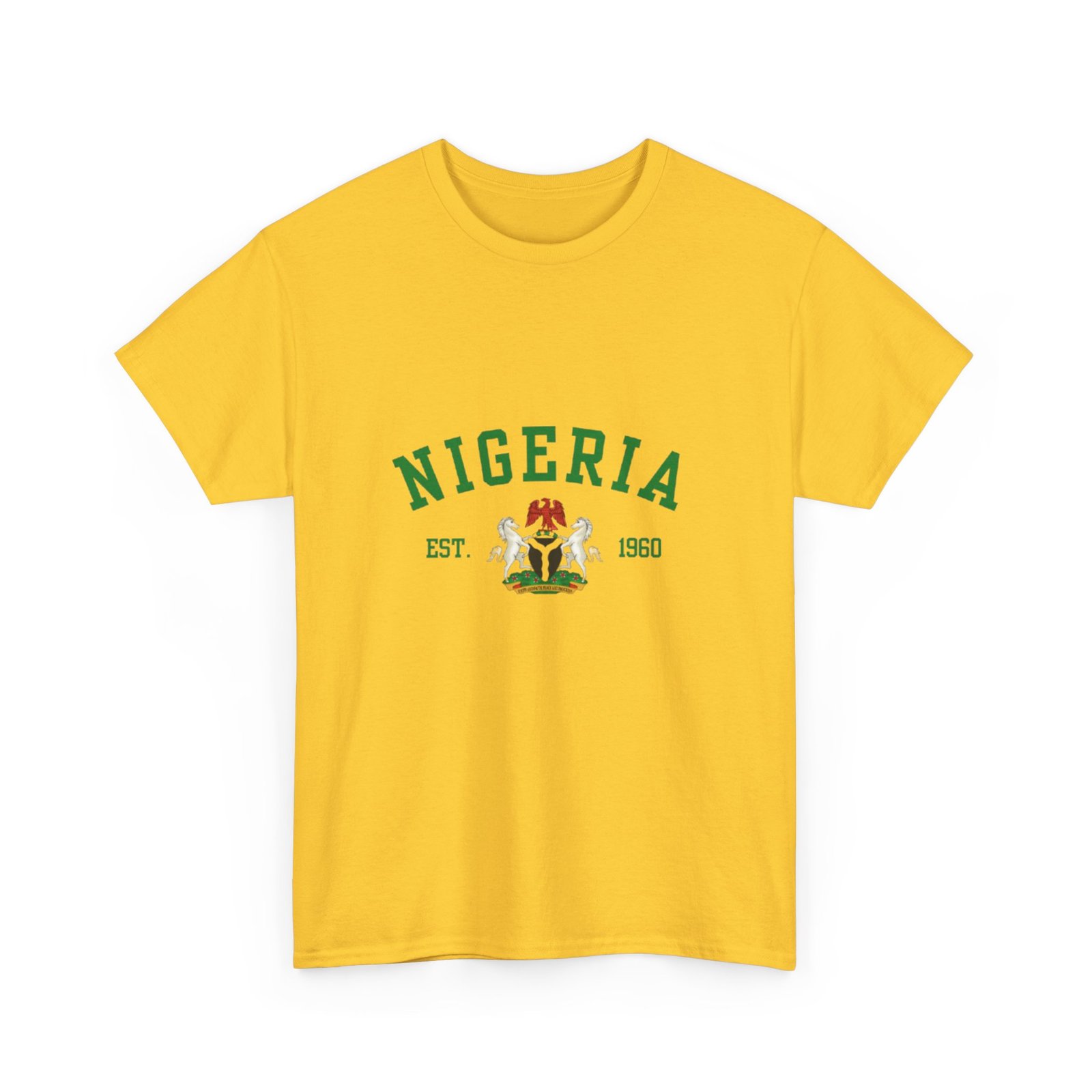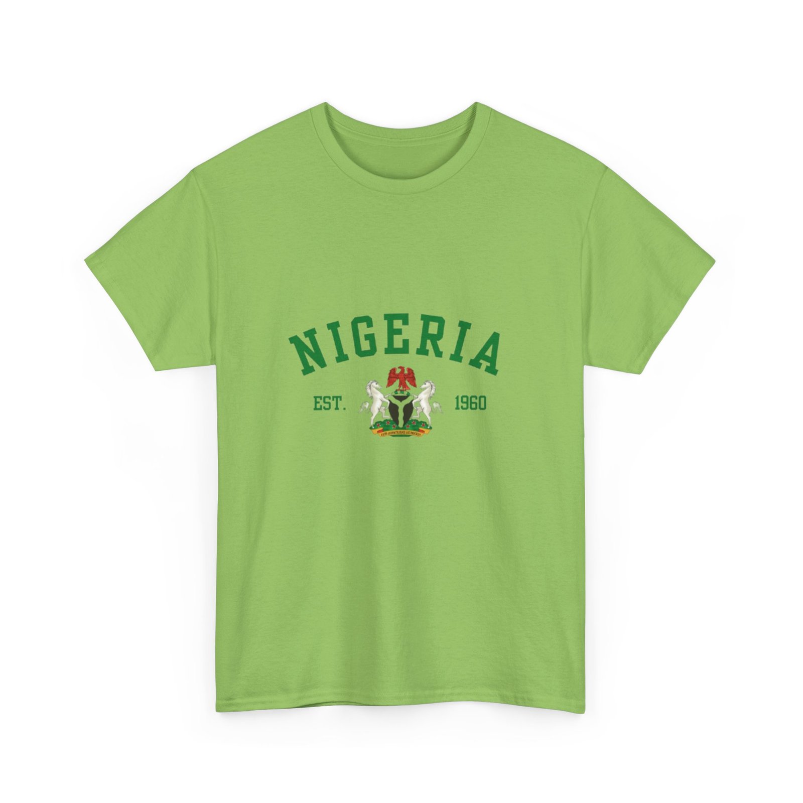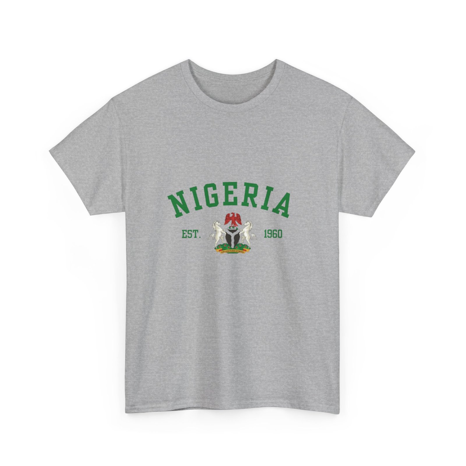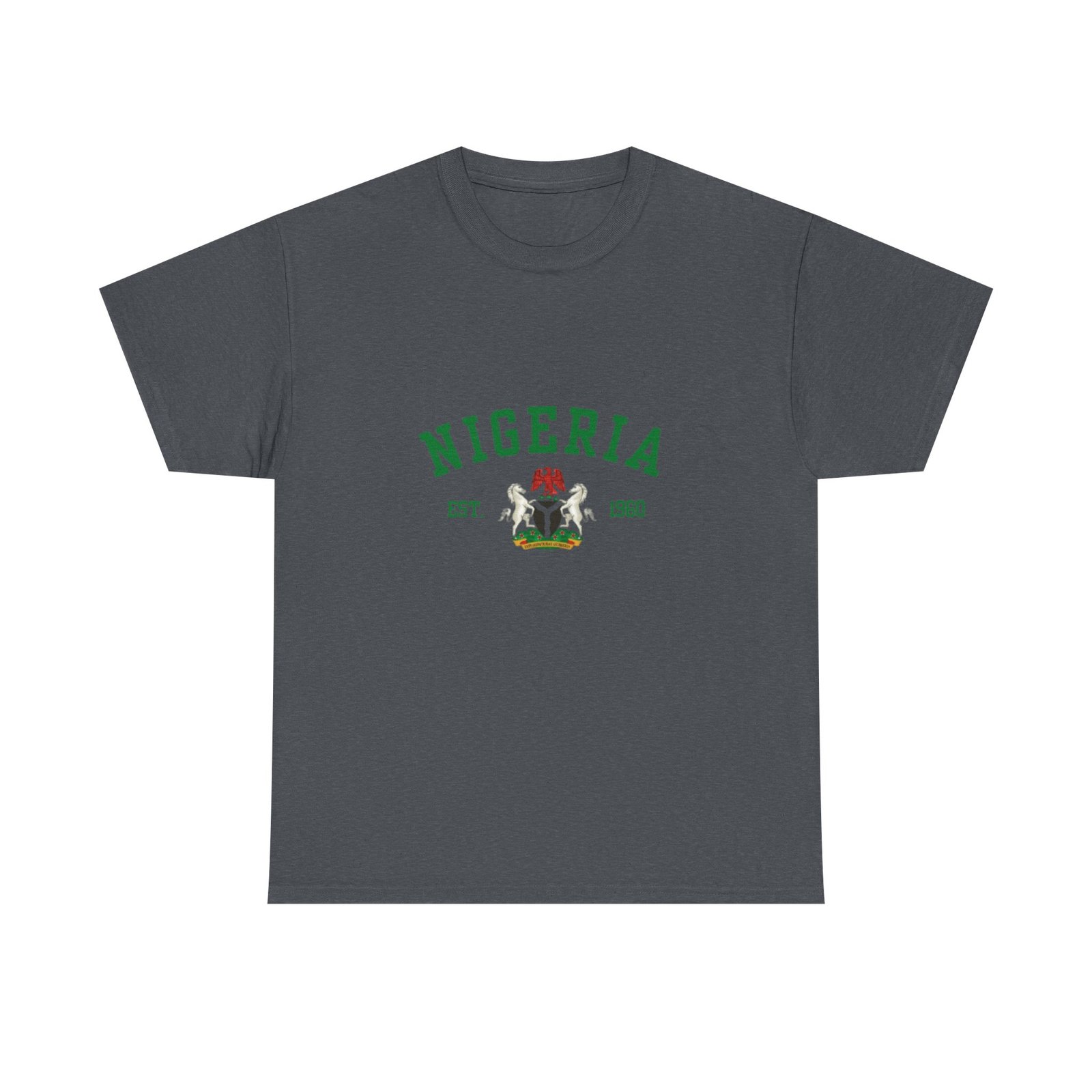 Nigeria Unisex Heavy Cotton Tee – Nostalgic Heritage Shirt, Great Gift for Independence Day, Casual Wear, Travel, Memory Tee | Orders in USD