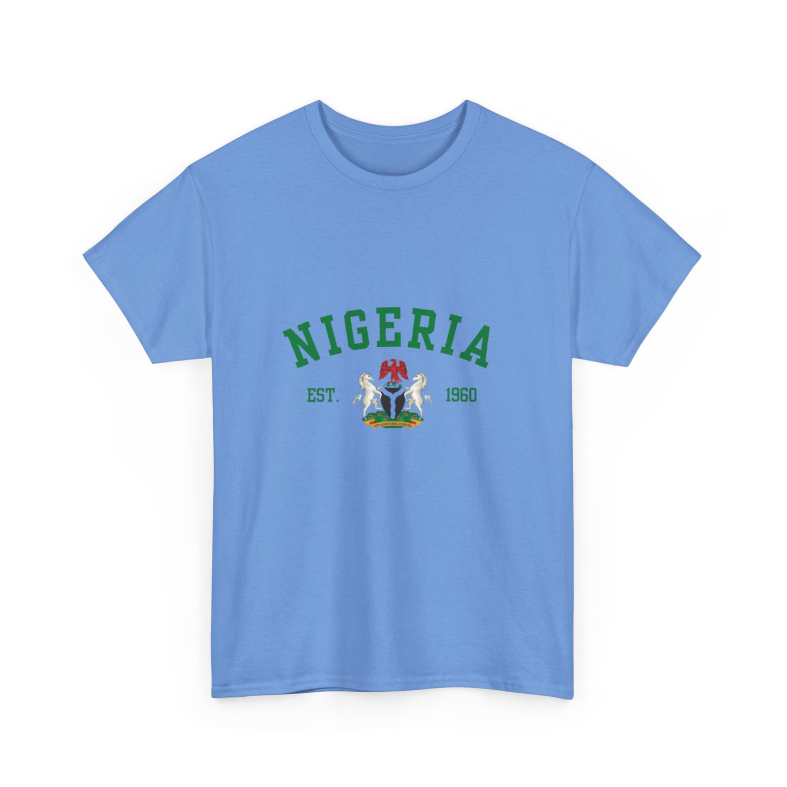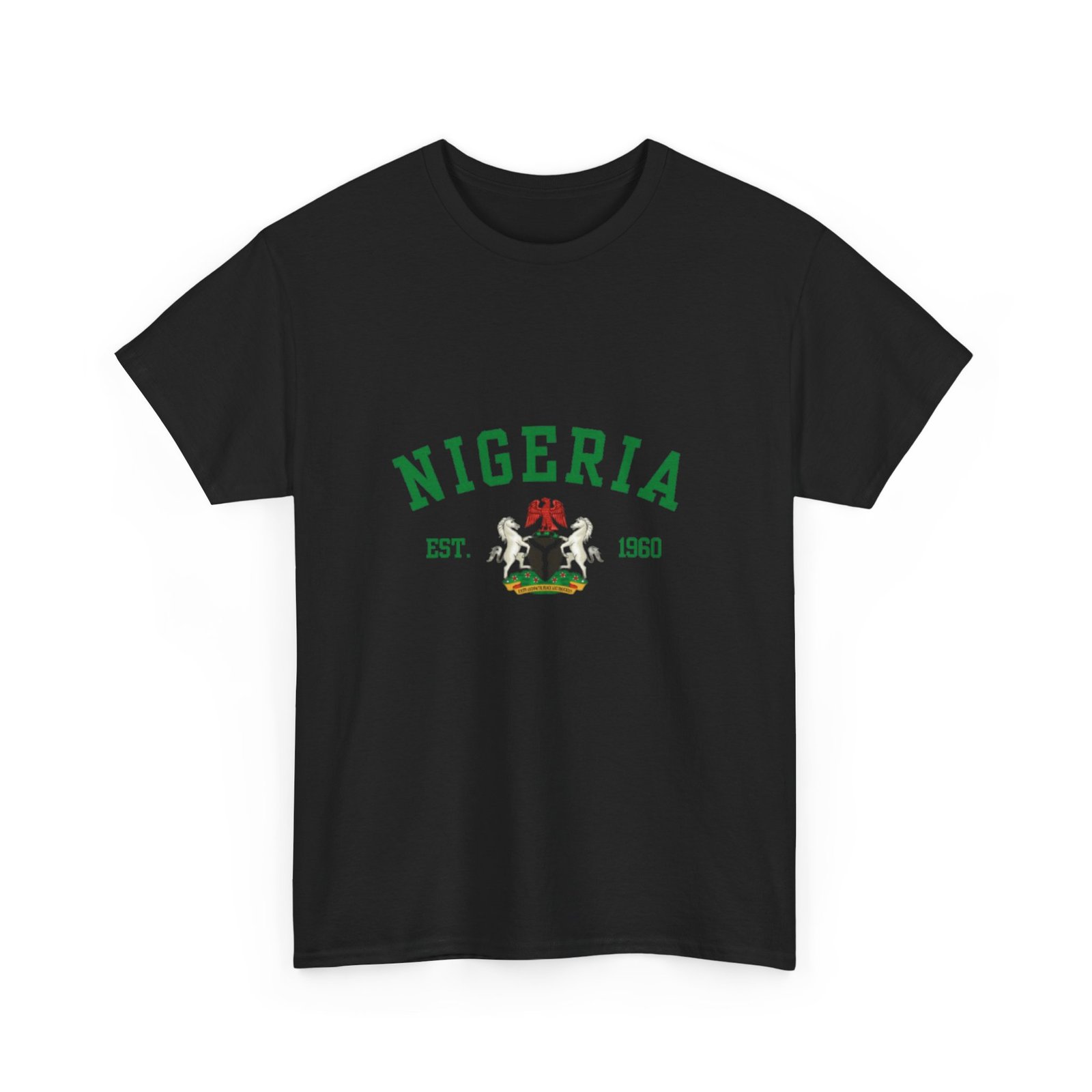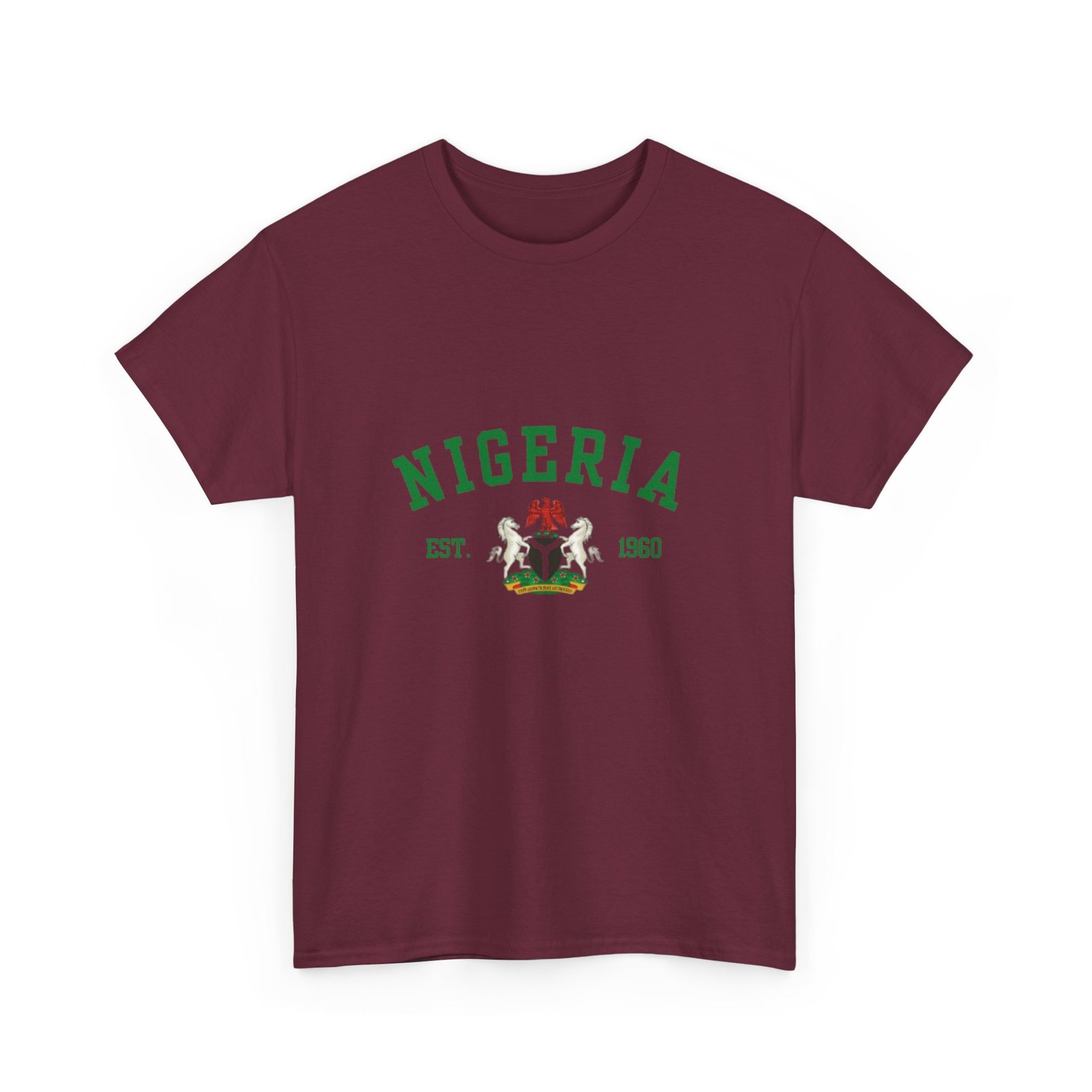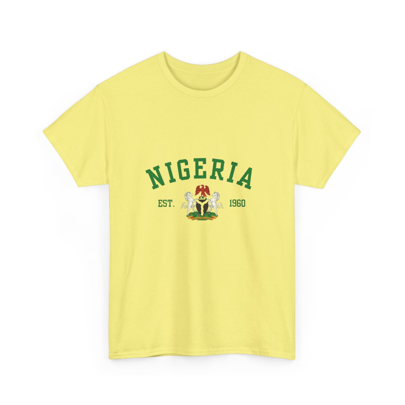Nigeria Unisex Heavy Cotton Tee – Nostalgic Heritage Shirt, Great Gift for Independence Day, Casual Wear, Travel, Memory Tee | Orders in USD